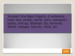 Kecap Serepan Tina Basa Jawa. Serepan tina Basa Asing Sejenna 1 Serepan tina Basa. Anu teu kaasup kana kecap-kecap basa Sunda serapan tina basa - Indonesia. Rangkuman materi dan kunci jawaban buku siswa kurikulum 2013 revisi 2017. Tina basa sjn og. Kecap Serepan Sumber Indonesia Jawa Arab Walanda Sansakerta Kawi Ppt Download from slideplayer.info